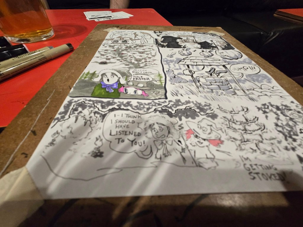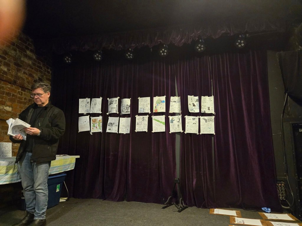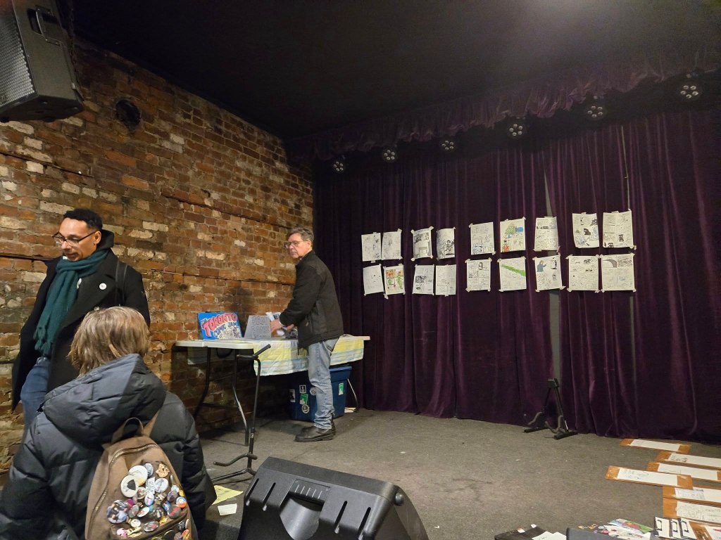 A very successful February 2025 Jam! New people came! Old people came! It was a good time all round. Thanks so much Francis (again!) for the yummy treats and the mini comic on cookie etiquette, for others who donated yummy things as well (cookies and timbits – whoever you are – thank you!) and to Frank for the photos (which you can also see below). Dave H also took a couple of photos and provided the music/song list, which (if you are interested) you can find here on Spotify.