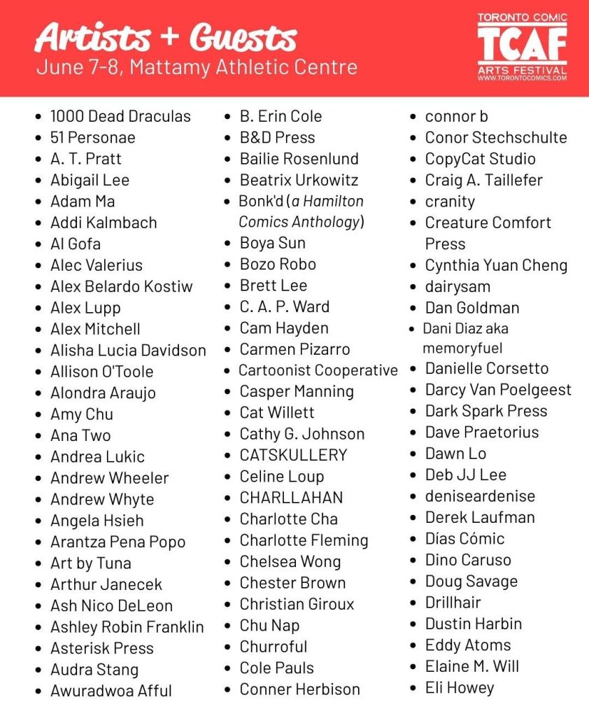 From their Instagram post, here is TCAF’s 2025 Exhibitor List! Check out all the goodness you’ll find this year at torontocomics.com!