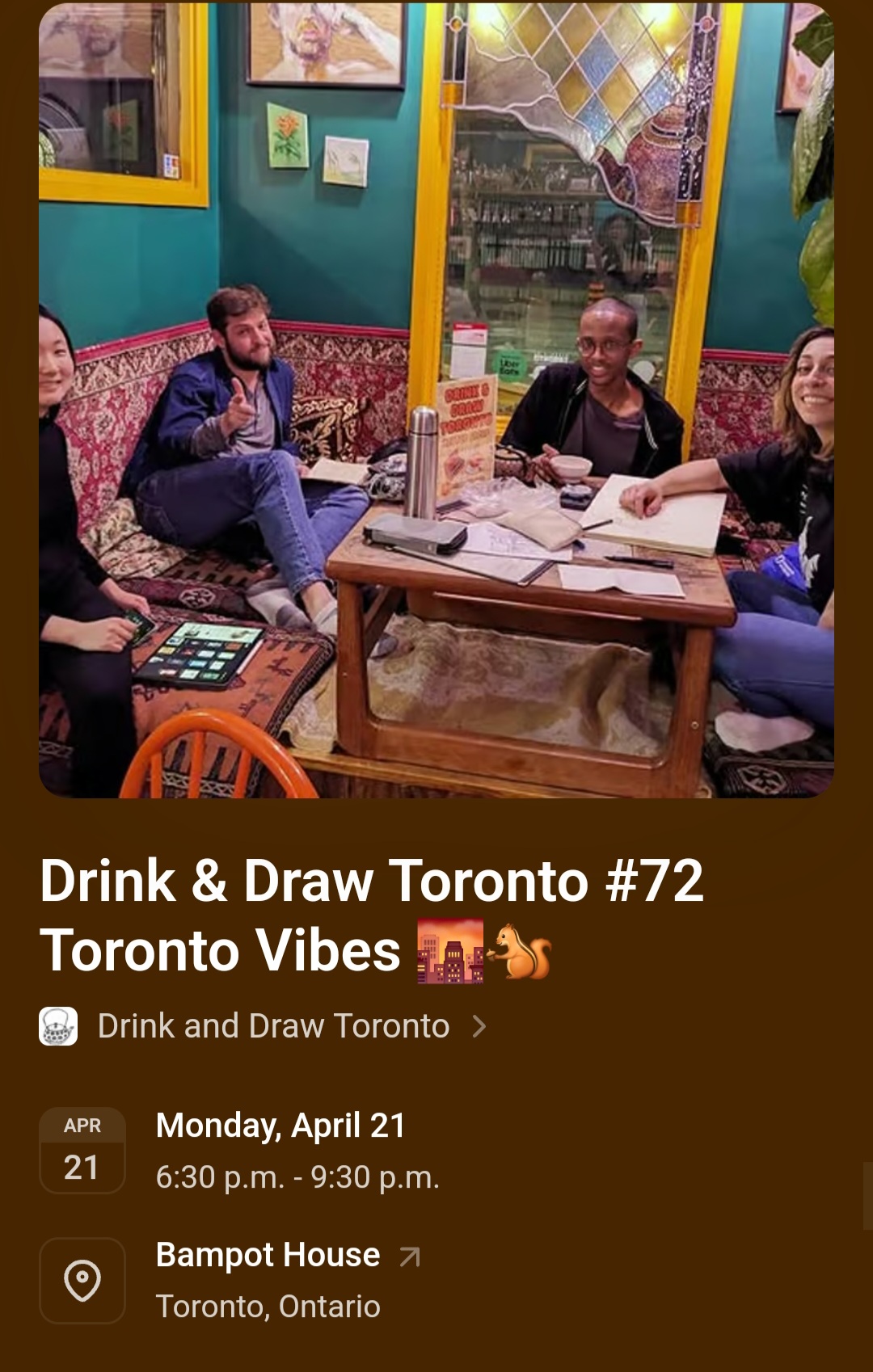 TODAY!: Drink and Draw Toronto #72, Monday Apr 21, 6:30 pm